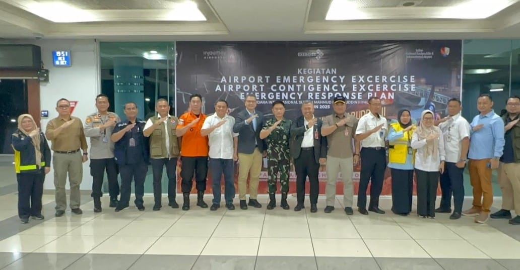 Pada Rabu, 15 Oktober malam, sebanyak lebih dari 100 personel dari berbagai unsur, mulai dari Lanud SMH, DVI Polda Sumsel, Airnav, Airlines, Basarnas, BPBD, Balai Karantina Kesehatan, PMI, Rumah Sakit hingga Poltekbang, diturunkan untuk langsung terlibat dalam agenda rutin yang dilaksanakan Bandara setiap dua tahun sekali sesuai dengan regulasi UU No 1 Tahun 2009 ttg penerbangan dan peraturan serta ketentuan regulasi dari Kementerian Perhubungan RI.