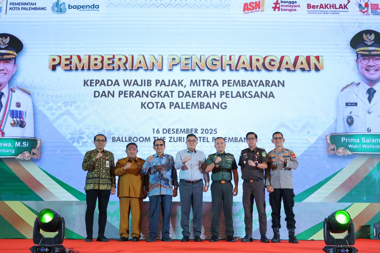 MAKLUMATNEWS.com Palembang—– Badan Pengelola Pendapatan Daerah (BAPENDA) Kota Palembang menggelar acara pemberian penghargaan kepada para Wajib Pajak, Mitra Pembayaran, serta Perangkat Daerah Pelaksana yang telah menunjukkan kontribusi luar biasa dalam mendukung optimalisasi penerimaan pajak daerah sepanjang tahun 2025.