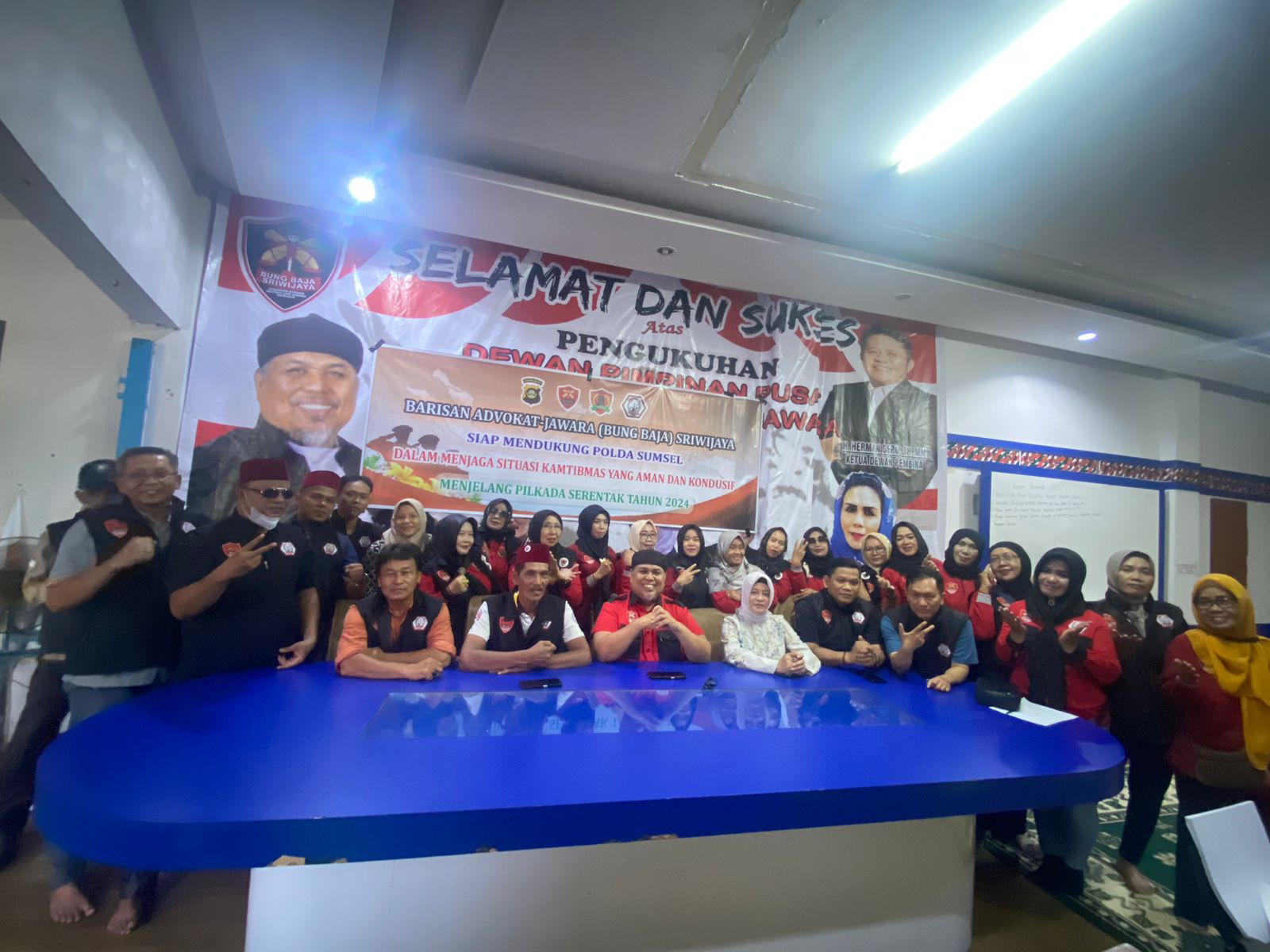 Turut hadir, Wakil Ketua Umum DPP Bung Baja, Romlan Zakaria, Sekjen DPP Bung Baja Sriwijaya, SD Darlis, Bendahara Umum, Adv. Maya Puspa Rivanita, Ketua Wanita Baja dan Anggota Barisan Advokat-Jawara Sriwijaya.