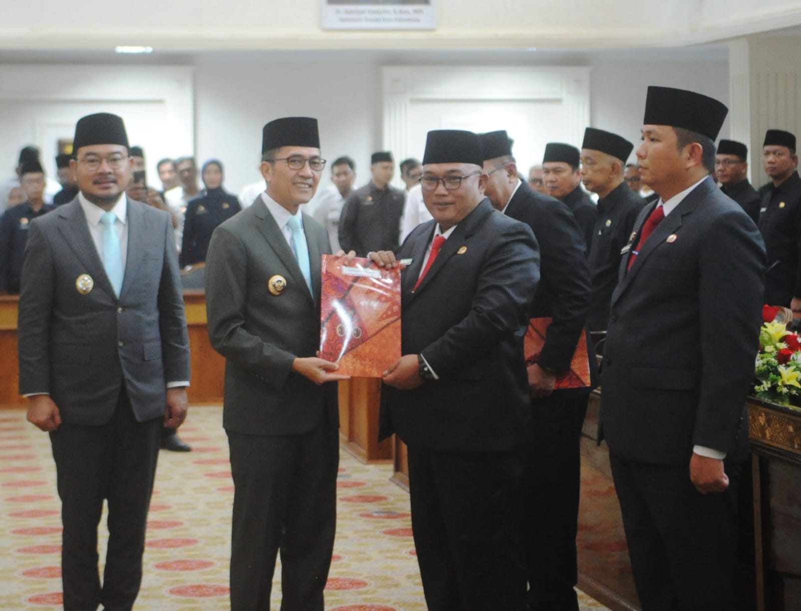 Pelantikan tiga pejabat Tinggi Pratama eselon IIB oleh Ratu Dewa ini dilakukan di ruang Parameswara, Kantor Setda Kota Palembang, Rabu (5/3/2025).