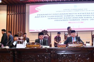MAKLUMATNEWS.com Palembang ——-Dewan Perwakilan Rakyat Daerah Provinsi Sumatera Sulatan (DPRD Prov.Sumsel) dan Gubenur menyepakati rancangan awal Rencana Pembangunan Jangka Menengah Daerah (RPJMD) Provinsi Sumatera Selatan tahun 2025 s.d 2029, hal ini dituangkan dalam bentuk penandatanganan nota kesepakatan Bersama antara DPRD Prov.Sumsel dan Gubernur pada Rapat Paripurna XIII (13) Sabtu, (16/5/2025).