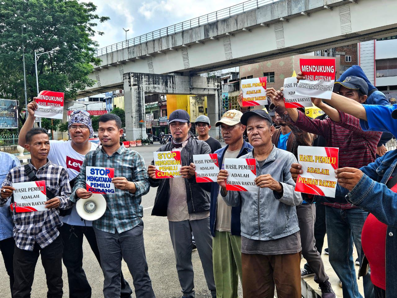 Aksi damai itu berlangsung di Bundaran Air Mancur (BAM) Kota Palembang, Minggu (21/4/2024).