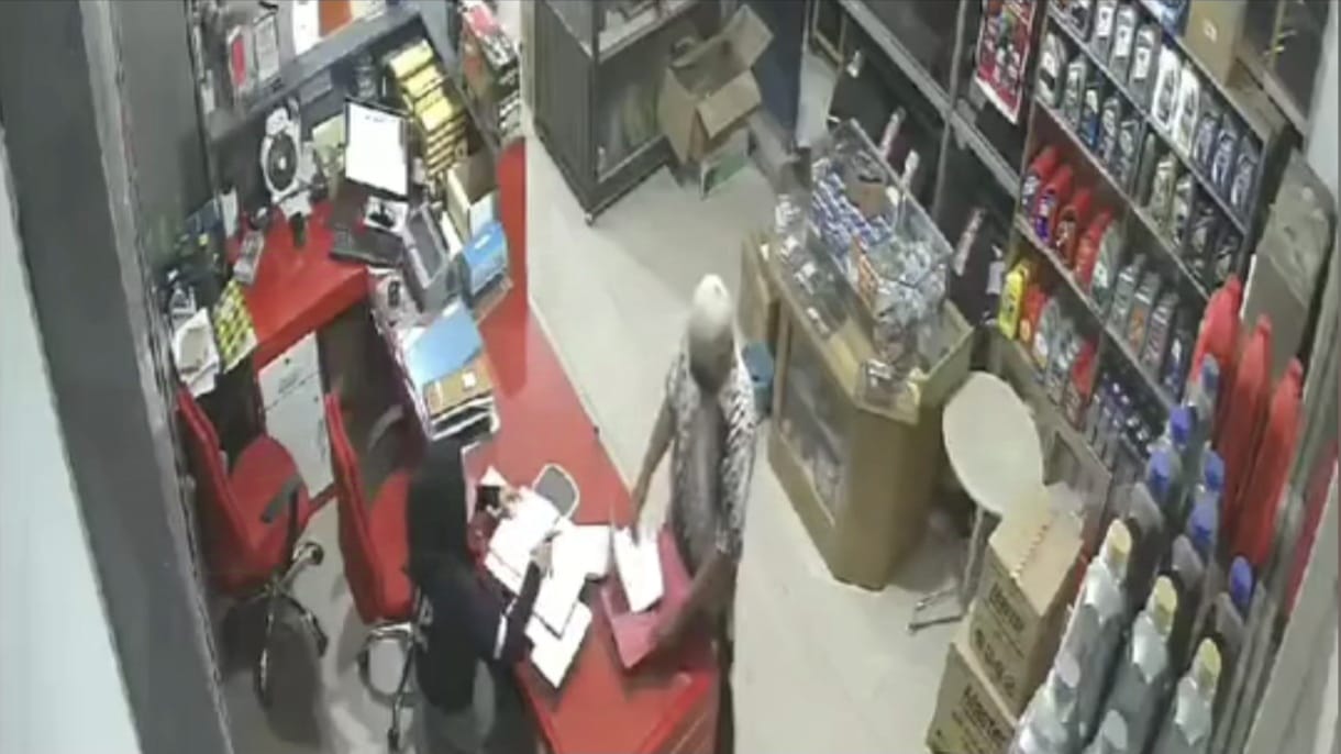 Dalam rekaman CCTV terlihat, pria memakai batik putih hitam dan peci tersebut masuk ke dalam ruko bengkel. Modusnya, ia mengalihkan perhatian korban dengan map kertas warna merah yang dibawanya untuk menutup handphone korban yang tergeletak di meja kasir.