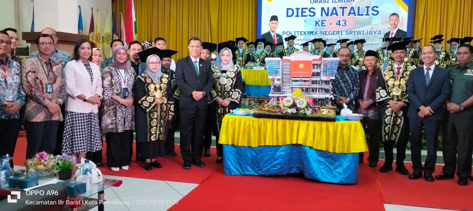 MAKLUMATNEWS.com Palembang.——Politeknik Negeri Sriwijaya (Polsri) memperingati Dies Natalis ke-43 dengan tema “Transformasi Polsri untuk Indonesia Emas: Mempersiapkan Generasi Vokasi dalam Mewujudkan Masa Depan Bangsa yang Unggul” di Auditorium Polsri, Rabu (22/10/2025).
