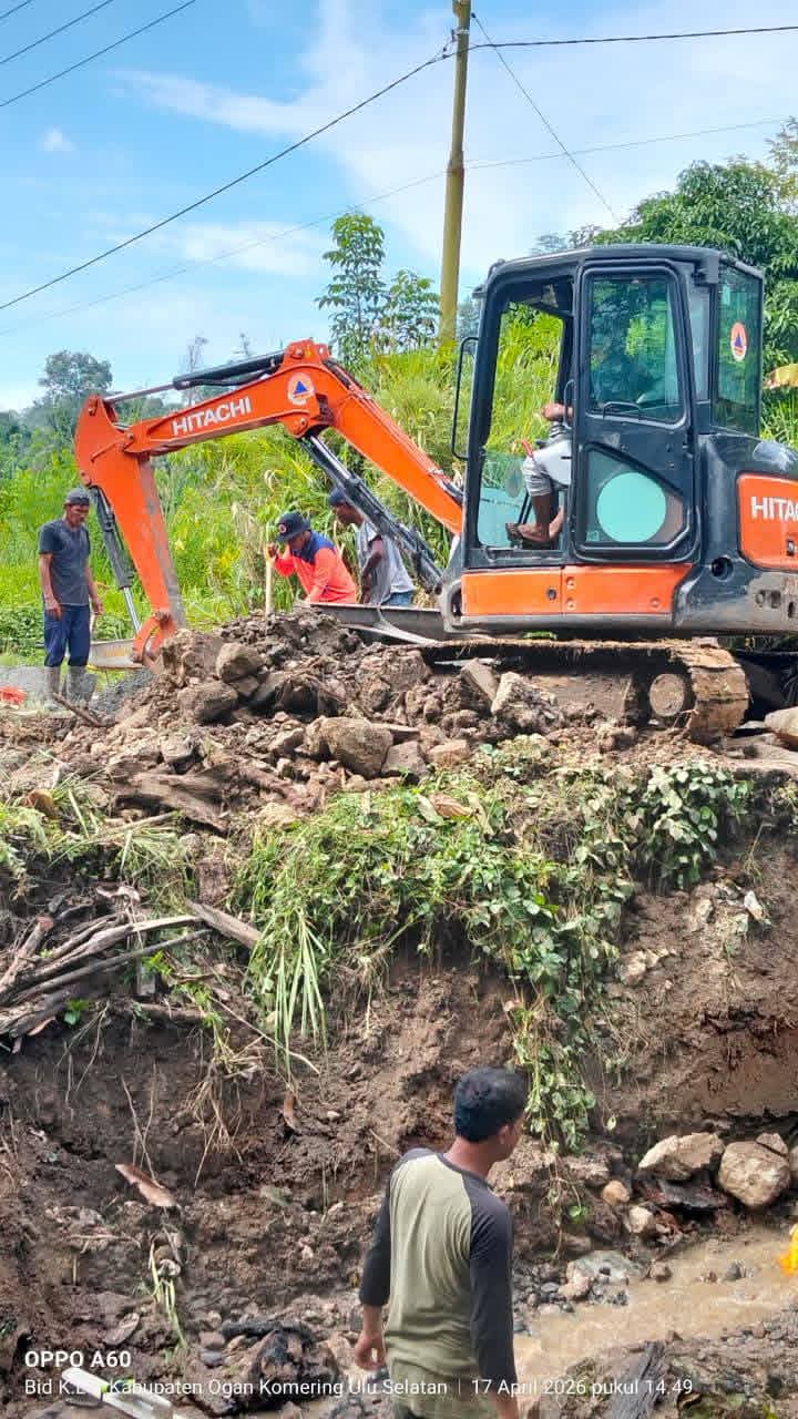 MAKLUMATNEWS.com,OKUS —— Pemerintah Kabupaten OKU Selatan(OKUS) melalui Badan Penanggulangan Bencana Daerah (BPBD) bersama Dinas Pekerjaan Umum dan Penataan Ruang (PU TR) melaksanakan penanganan jalan terdampak longsor di Desa Rantau Nipis, Kecamatan Banding Agung,Sabtu(17/4/26).