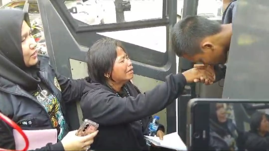 Momen haru pun terjadi ketika Nuraini dua kali memohon kepada petugas untuk bertemu dengan anaknya terlebih dulu sebelum bus tersebut berangkat ke Indralaya.