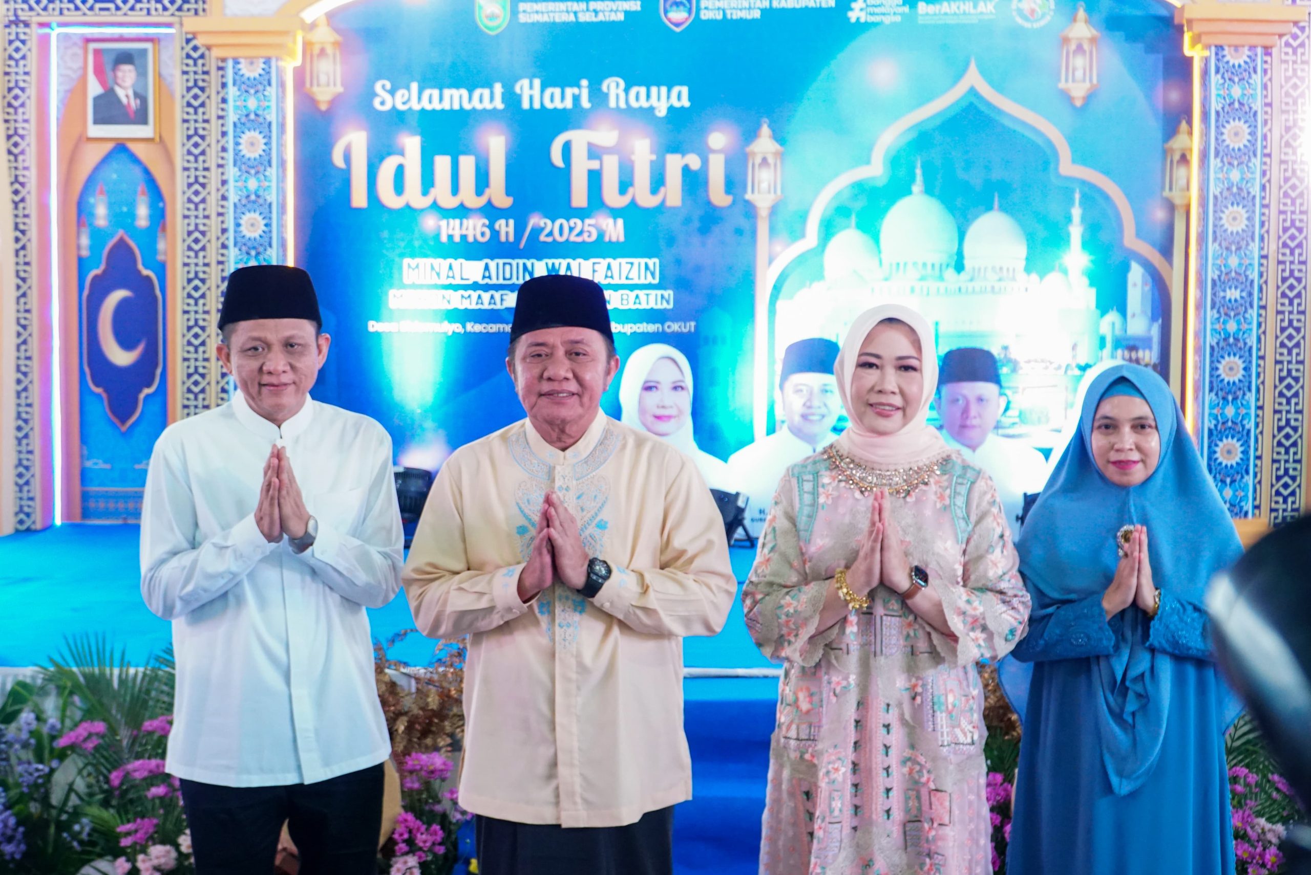 MAKLUMATNEWS.com, OKU Timur—-Gubernur Sumatera Selatan (Sumsel) H Herman Deru di dampingi Ketua Tim (TP) Pemberdayaan Kesejahteraan Keluarga (PKK) Provinsi Hj Febrita Lustia HD sekeluarga besar melakukan silaturahmi dan halal bihalal dalam rangka hari Raya Idul Fitri 1446 Hijriah di tanah kelahirannya Desa Sidomulyo Kecamatan Belitang Kabupaten Ogan Komering Ulu Timur (OKUT), Kamis (3/4/2025).