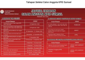 MAKLUMATNEWS.com Palembang.——Tim Seleksi Calon Anggota Komisi Penyiaran Indonesia Daerah (KPID) Sumatera Selatan resmi membuka pendaftaran untuk periode 2025–2028. Ketua Timsel, Prof. Dr. Sri Rahayu, SE., MM, menyampaikan bahwa proses seleksi ini menjadi bagian penting untuk memastikan KPID Sumsel tetap berperan aktif dalam mengawasi dan mengembangkan ekosistem penyiaran yang sehat, berkualitas, serta sesuai regulasi yang berlaku. Pendaftaran dibuka mulai 22 September hingga 31 Oktober 2025