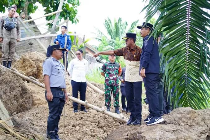 Mewakili Bupati Musi Banyuasin H M Toha SH, Wakil Bupati Musi Banyuasin (Muba) Rohman turun langsung ke lapangan untuk meninjau lokasi bencana tanah longsor sekaligus menyalurkan bantuan berupa beras dan paket sembako kepada warga terdampak.